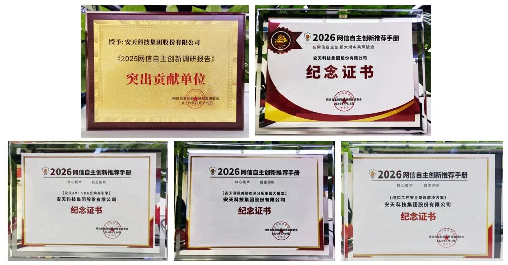 4月19日,第九届关键信息基础设施自主安全创新论坛在北京举办,会议同期发布了《2025网信自主创新调研报告》(以下简称《报告》)。安天连续8年参与《报告》编写,今年作为组长单位牵头编写“重构安全体系,实现自主免疫”章节,并荣获突出贡献单位、2026网信自主创新“尖锋榜”金风帆。同时,安天AVL SDK反病毒引擎获评网信自主创新推荐产品,安天澜砥威胁检测分析垂直大模型获评金手指AI应用案例,安天港口工控安全建设解决方案获评网信自主创新推荐解决方案。安天港口行业工控网络安全运营体系建设项目、视频系统恶意代码防护建设项目被报告收录。