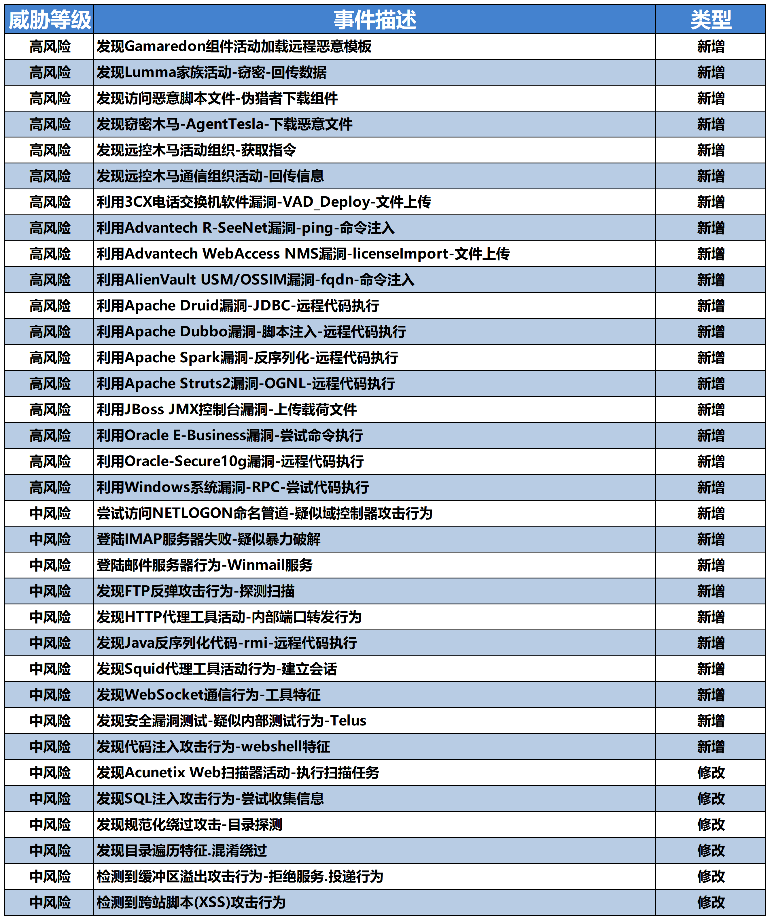 本期安天网络行为检测引擎规则库部分更新列表如下: