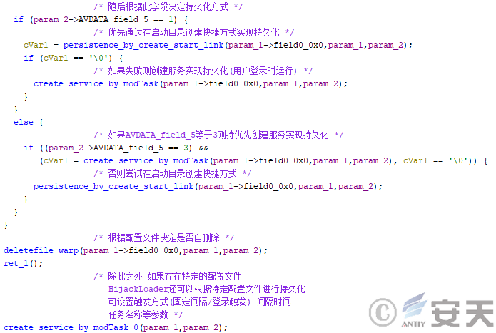 HijackLoader拥有两种持久化方式,分别为通过在启动目录创建快捷方式实现持久化和创建服务实现持久化。当通过创建服务实现持久化时还可以设置两种不同的触发器:用户登录时触发和固定时间间隔触发。