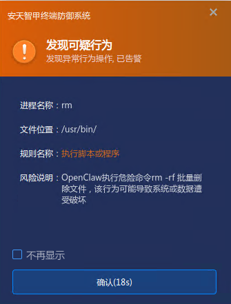 随着OpenClaw用户的快速增长,终端安全也面临了新一轮的挑战,基于此情况,安天面向政企和个人用户推出“智甲OpenClaw护航版”,助力用户安全使用OpenClaw以及其他各类AI Agent。