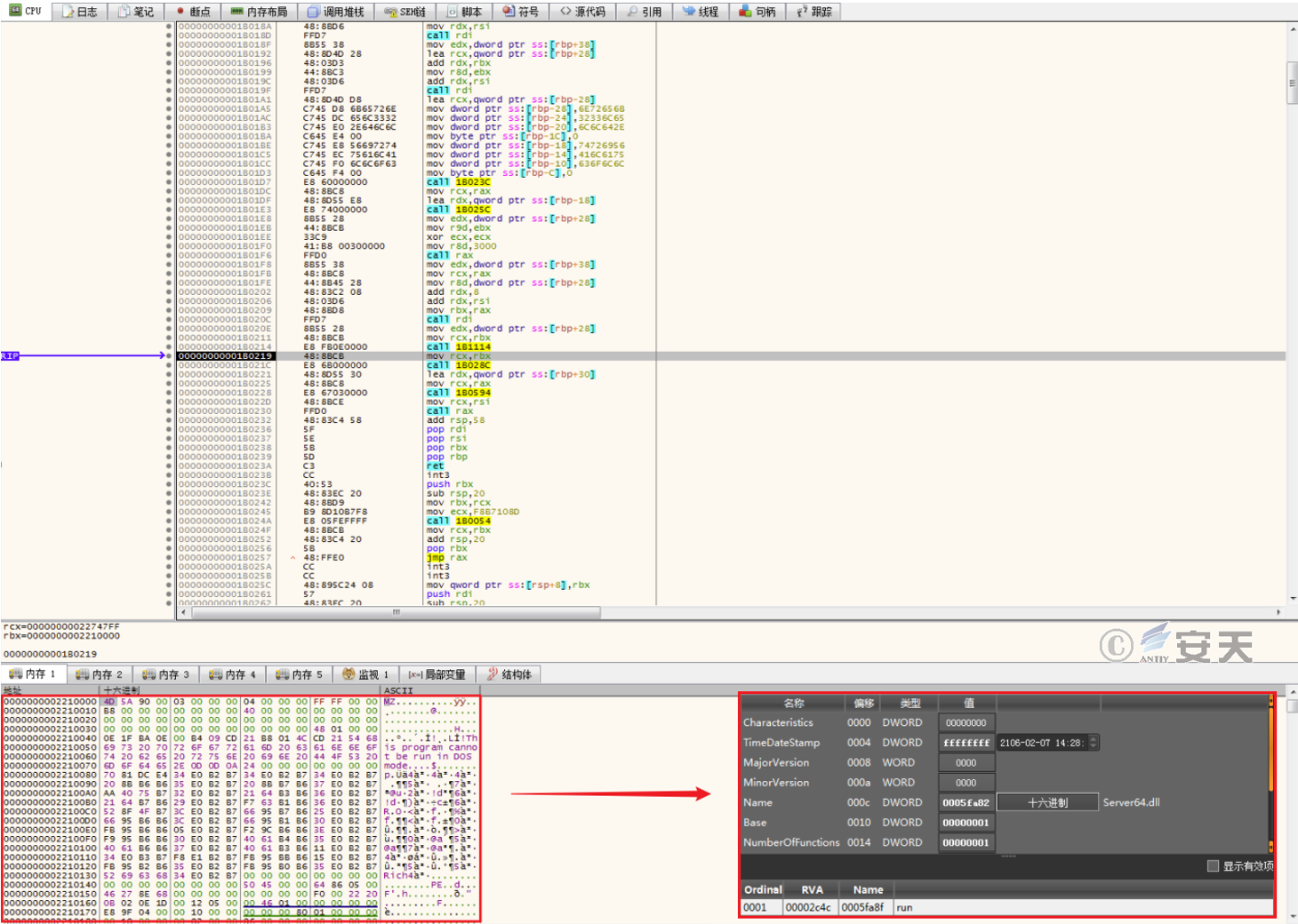 libcef_dll_wrapper.dll被加载执行后,读取同路径中的同名bin文件,对其解密得到最终的载荷,该文件原名称为Server64.dll。