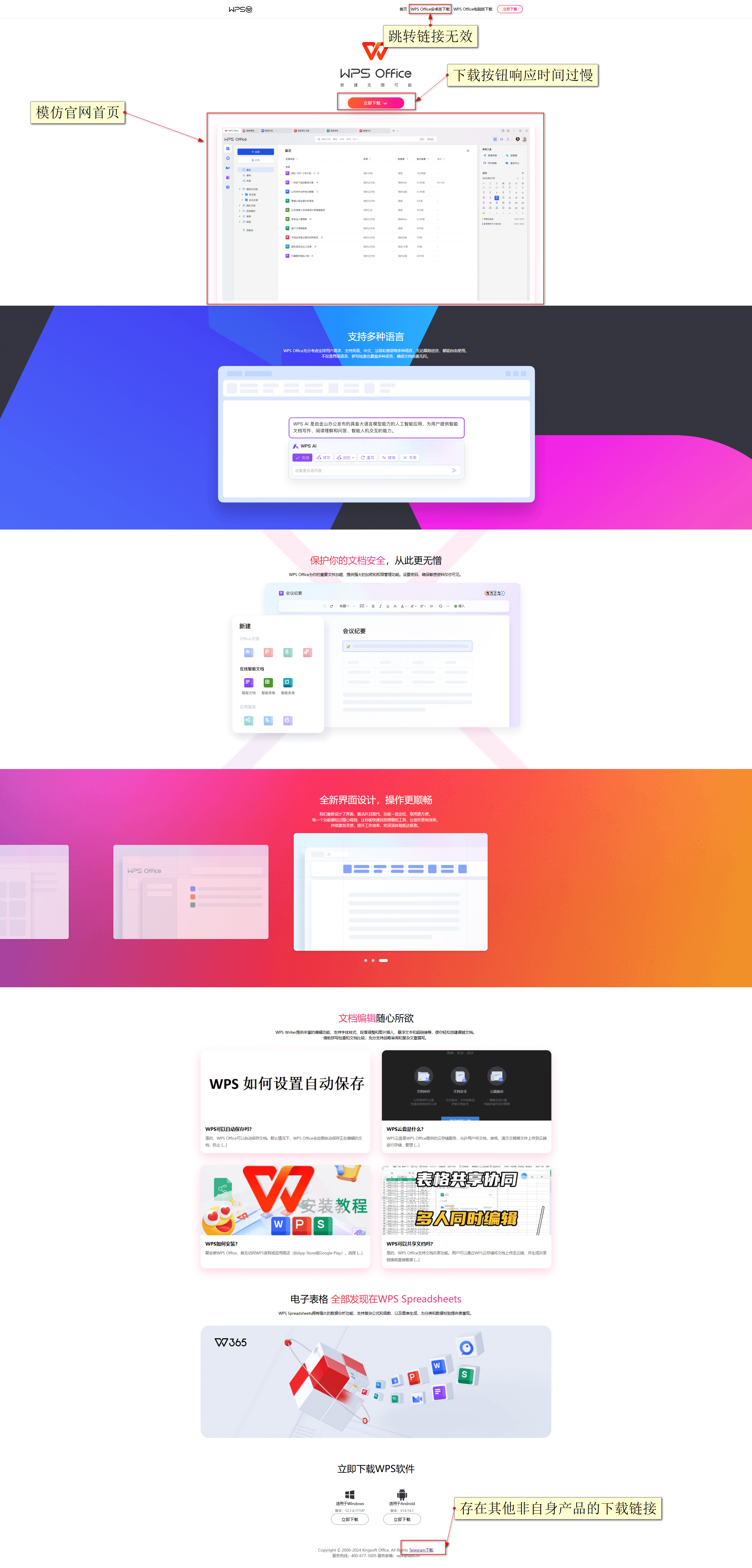 Bing网页搜索“wps 下载”结果的第10位仿冒WPS网站的概览如下表所示:
