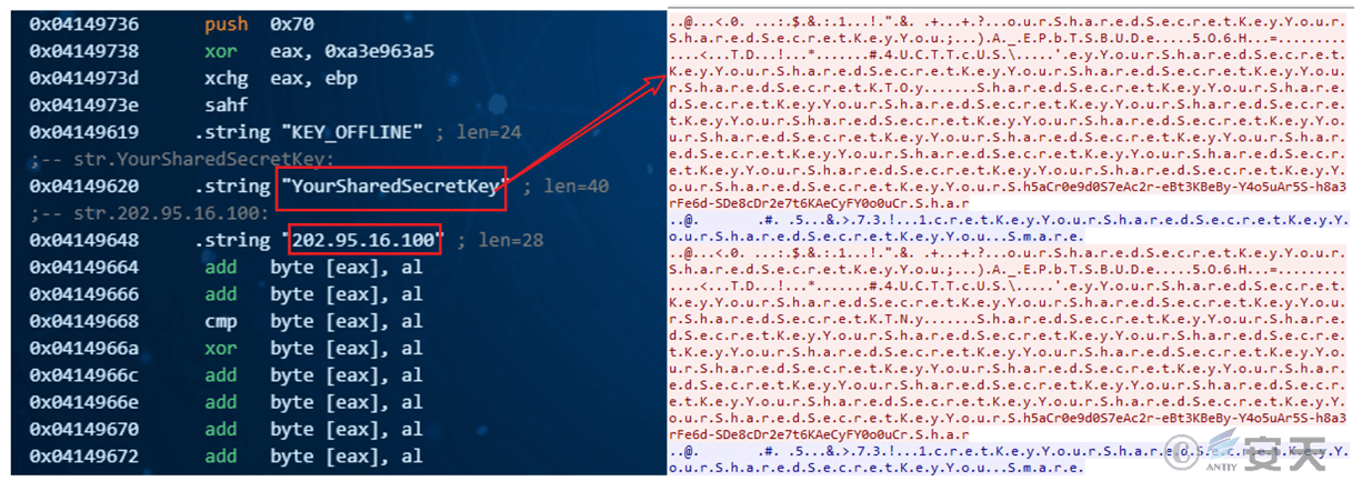 下载的VFPower_32.dll文件会连接C2服务器地址202.95.16.100:80,下载UserInfoPlugin.dll文件(收集系统信息与精准投放远控),并使用“YourSharedSecretKey”字符串作为心跳包内容。