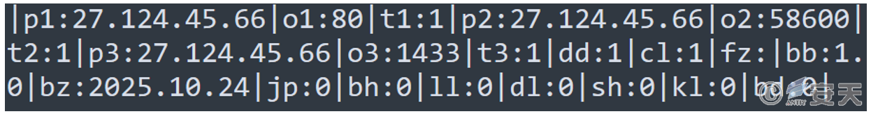 利用配置信息轮询连接C2地址27.124.45.66,端口号为80586001433,与C2服务器建立心跳