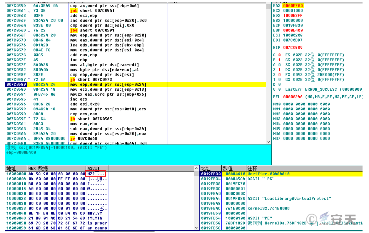 智甲还具有内存防护能力,可实时监控内存环境,可对内存中数据进行检测,并可对异常内存操作进行拦截。本次事件中,当文件Verifier.exe执行shellcode时,智甲可立即拦截。