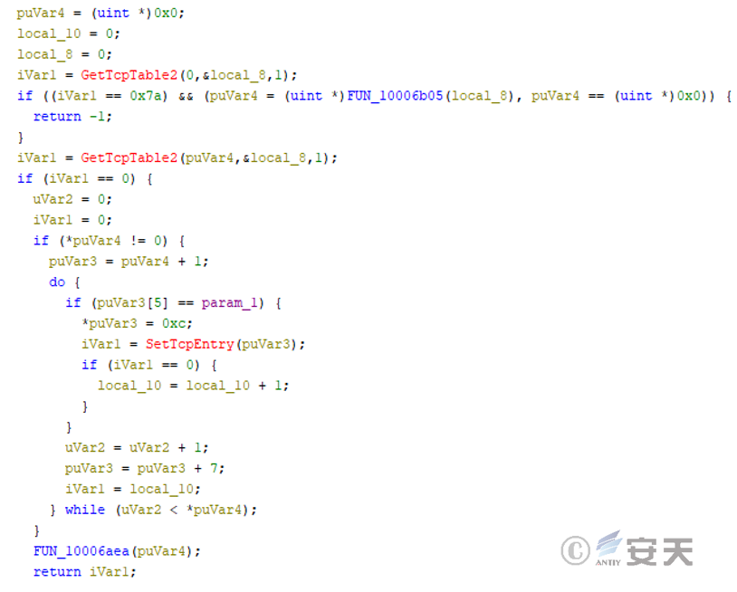 规避检测:提权,修改TCP连接表,切断安全软件进程与其远程服务器的网络通信
