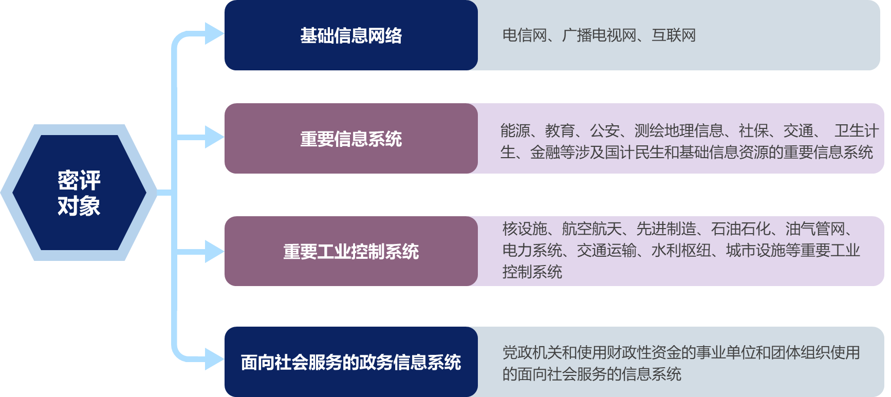目前,商用密码应用形式并不乐观,普遍存在密码应用不广泛、不规范和不安全等问题。为了解决商用密码应用中存在的突出问题,通过“密评”的方式,以评促建、以评促改和以评促用,来逐步规范商用密码的使用和管理。