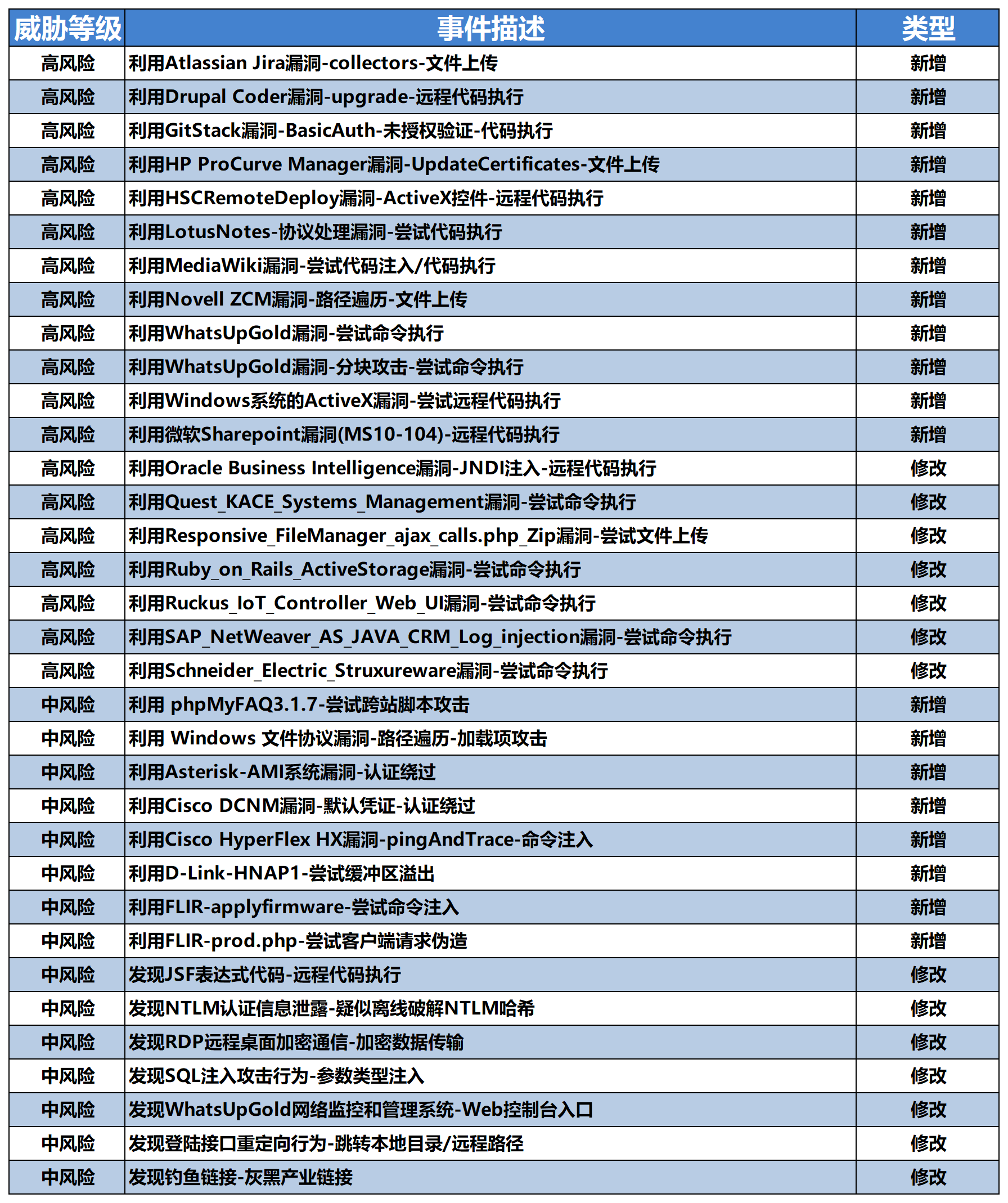 本期安天网络行为检测引擎规则库部分更新列表如下: