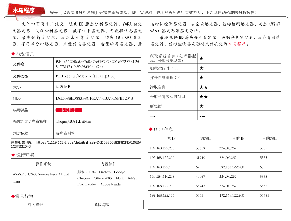 目前,安天追影产品已经实现了对该 类挖矿木马的鉴定;安天智甲已经实现了 对该挖矿木马的查杀。