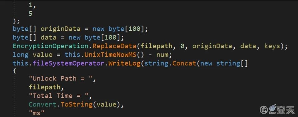 试图采用非对称加密RSA、对称加密AES和XOR加密三种加密方式任意一种方式进行加密。本次分析的样本采用的加密策略是XOR加密,采用指定长度的字符XOR指定文件前100byte字符。 |