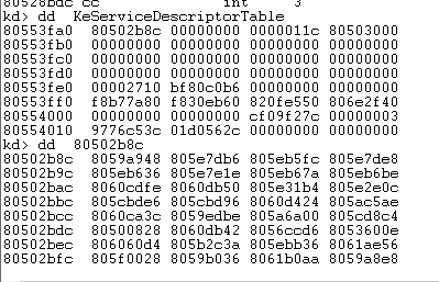 图4 修改后的KeServiceDescriptorTable中的函数地址