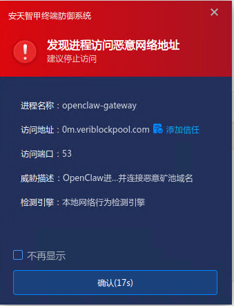 智甲产品具备分布式主机防火墙能力 ,可对OpenClaw的所有网络访问出入站流量进行实时检测,一旦发现OpenClaw访问恶意网络时可立即拦截,防止本地计算机被远控或者数据外泄。